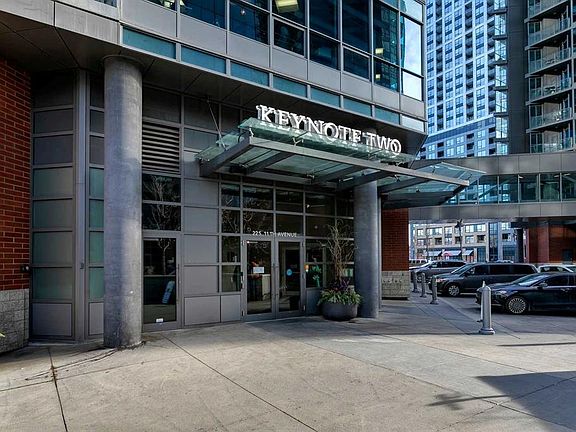 Welcome to Keynote 2 – Elevated Living on the 27th Floor. Experience breathtaking, unobstructed mountain views to the west and stunning cityscapes from this beautifully appointed unit in Keynote 2. Located on the 27th floor, this bright and spacious condo features 9-foot ceilings and floor-to-ceiling windows, offering a seamless flow of natural light throughout. Built with durable all-concrete construction, the building ensures excellent sound insulation and privacy. Enjoy year-round comfort with central air conditioning—especially ideal for this sunny, west-facing unit. Upon entering, you're greeted by an open-concept layout and elegant engineered hardwood flooring. The modern kitchen is designed for both functionality and style, featuring granite countertops, a convenient breakfast bar, and stainless steel appliances. There's ample space for a dining area, a home office setup, and a generous living area—perfect for relaxing or entertaining guests. Step out onto the private balcony to soak in the afternoon sun along with panoramic views of the mountains and downtown skyline. The spacious primary bedroom boasts floor-to-ceiling windows and a walk-in closet with custom organizers. The 4-piece bathroom includes a large soaking tub, a separate shower, and granite countertops. A dedicated laundry and storage room houses a full-sized washer and dryer for added convenience. Conveniently located for easy parking and exit from the underground parking, this home also comes with a Titled Underground Parking Stall and a large Titled Storage Locker. Condo fees include all utilities except electricity. Premium Building Amenities Include: Two fully-equipped fitness centers: one with cardio equipment (treadmills, ellipticals, etc.) and another with free weights, squat racks, and resistance machines; Hot tub and owner’s lounge/party room; Two guest suites available for rent; Secure bike storage; Direct indoor access via the Plus 15 to Sunterra Market and Market Bar in Keynote 1; Ground-level access to Sunterra Market & Bar, 5 Vines Wine & Spirits, and Starbucks; Located within walking distance to Stampede Park, local restaurants, cafes, parks, and scenic biking/running paths. With excellent access to public transit and major roadways, this is urban living at its finest!
