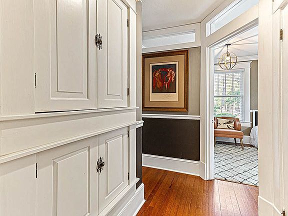 Historic 4 level 4/3 Sears and Roebuck home in heart of downtown Southern Pines. Prime location! Professionally designed with modern updates and historic charm. Guest cottage not included or for sale. Two staircases, pine hardwood floors, gourmet kitchen with built in cabinetry, gas range, 2 sinks, breakfast bar, living room, dining room, great room, sunroom, bedroom on main with full bath. Storybook outdoor living areas, meandering brick walkways, circular patios, arbor and trellis dripping with ivy and twinkling lights, mature trees and fenced in yard. All bathrooms remodeled, stunning master bath w/ floating vanities, cast iron tub, walk in shower with custom bench. Attic with stairway w/ electric and air ducts installed. Full basement insulated with spray foam w/ storage space.