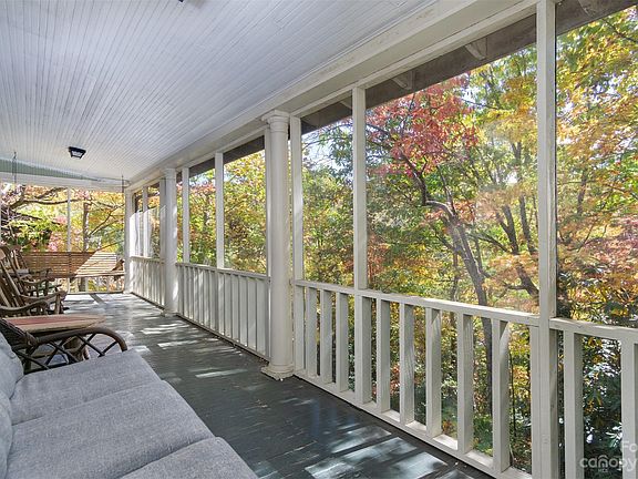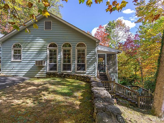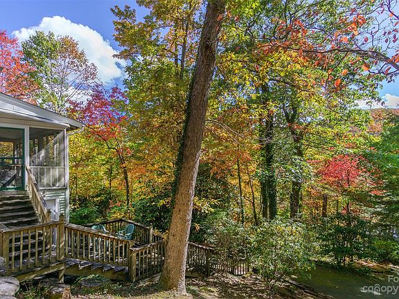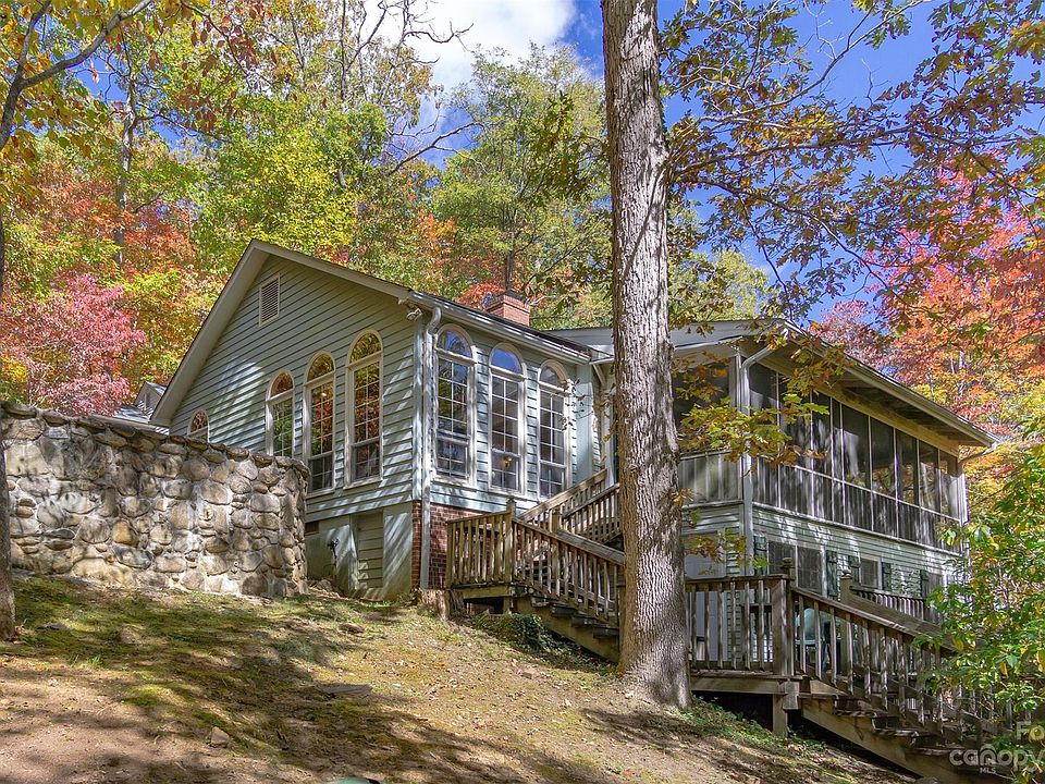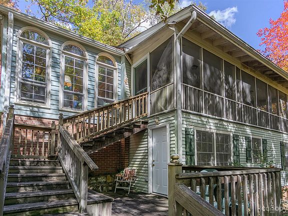 This quintessential Montreat home enjoys nice views from its screened front porch. The main house is on one level. This is a blending of the original cottage containing the Living Room with a native stone fireplace, 2 ensuite BRs, a classic Dining Room, walk-in Pantry, and Laundry, combined with a spacious addition of a Kitchen and Family Room with abundant natural light and a vaulted ceiling. Parking is flat and a level walk to the entrance with one step into house. Accommodate guests or family in two additional living spaces. The first has a BR, small den, and full BA below the front porch with a private entrance and good deck space. Second is a guest cottage (1BR/1BA) behind the house, connected by a breezeway. This guest cottage appears original to the property and has beautiful heart pine floors and wonderful sunlight. Stone walkways meander through a gently sloping and terraced yard. Good parking at the top, the middle and at road level. A nice walk to The Lake and town center.