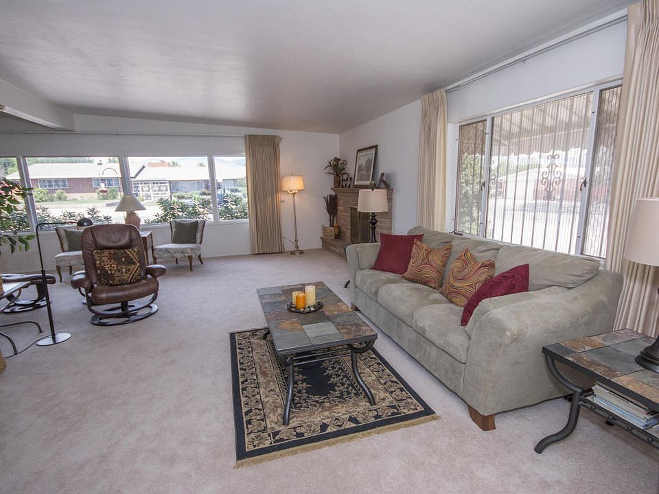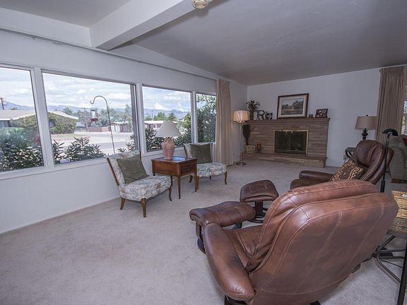Solid brick, Central Tucson gem on over .25 acre lot with picture perfect view of the mountains. Enjoy the natural light from huge front windows and skylights. Floor plan offers a formal living room, dining room and 3 spacious bedrooms. Master bedroom has an adjoining master bath. You'll love cooking in the kitchen with dual ovens, tons of counter space, and cabinets with pullout shelves. Beautiful wood burning stacked stone fireplace and 2 car enclosed garage with additional storage. Low maintenance backyard offers great privacy and retractable sun shade. Located in the heart of town and close to shopping and entertainment, this home is ready for your personal touches!