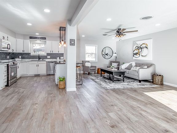 FANCY LIVIN' IN A SMALL TOWN! Welcome home to your Dreamy & New Modern Farmhouse in the small town of Mount Hope, KS. The convenient access to Wichita and Hutchinson gives you the best of both worlds. Small town living in modern farmhouse! This spacious 1860 sqft. home was remodeled from top to bottom, providing a breathtaking open concept as you walk in the door including a gorgeous black granite island, new stainless steel appliances, and hand painted shiplap walls, while maintaining some original character with the original built in shelving and window bench. The black and white modern bathroom is elegant and timeless, while the huge separate family room with vaulted ceilings, leading out your new french patio doors to your covered back patio, is great for entertaining. These modern finishes with a farmhouse flare throughout was inspired by the rustic pendant lighting throughout and old world premium black and white pattern ceramic tile in the bathroom. This 4 bedroom, 1 bath home is turn key ready and offers plenty of space for the whole family. And we cannot forget about the oversized detached 2 car garage, with work bench, and the large corner lot. This homes' unique combination is truly a one of a kind in Mount Hope and definitely a MUST SEE! Don't wait and call today to schedule your showing!