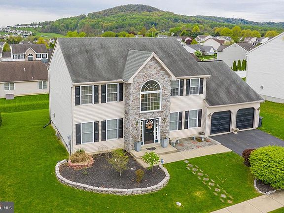 When you enter this home you feel like you walked straight into the pages of a design magazine. After investing over $20,000 of upgrades into the home, work relocation is the only reason the current owners are leaving this immaculate, move-in ready, 4 bedroom home in Heidelberg Run East in Conrad Weiser School District! Home offers excellent curb appeal including brand new garage doors! Enter through the front door into the grand two story foyer offering a glistening modern chandelier and 12~ tile flooring. To your right is the spacious dining room complete with crown molding, 12" tile flooring, modern light fixtures, and large front windows allowing for ample natural lighting. To your left, you will be pleased to find the formal living room offering hardwood flooring, crown molding, gorgeous neutral paint, and large front windows. Continue on to the 27 handle eat-in kitchen boasting crown molding, granite counter tops, all stainless appliances, subway tile back splash, double stainless sink with retractable faucet, island with additional storage and granite counter tops, and newly installed granite breakfast bar with open concept to family room and additional bar stool seating for 3. The kitchen also provides a unique, walk-in pantry with a sliding barn screen door, sliced natural wood shelving, and modern light fixtures. A glass slider from the kitchen will lead you to a private stamped concrete patio with natural fencing and backyard. Back inside you can cool off with central air as you continue along the first floor to discover the ample-sized family room complete with gleaming hardwood flooring, crown molding, and marble gas fireplace with a rustic-style mantle. The incredibly spacious laundry/mud room offers new laminate flooring, storage closet, and access doors to both the backyard and 2 car, built-in garage. Completing the first floor of this pristine home is the convenient, centrally located, half bathroom with new laminate flooring, crown molding, and mod