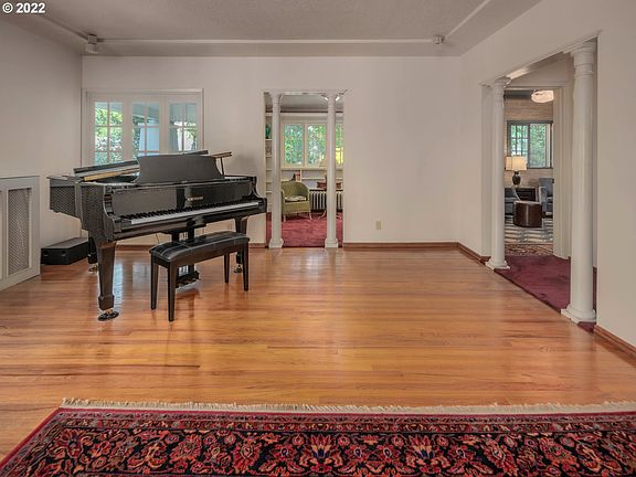6 bed 2 bath Arts & Crafts Bungalow on sprawling, tree-lined Laurelhurst corner. Wraparound veranda in gardener's paradise w/mature blooms offering a cool canopy of privacy. One of the earliest homes constructed in Laurelhurst, it exudes the grandeur & charm of 1917 w/ well-appointed spaces, built-ins & 3 FPs. Grand living rm, main level bed. 5 Beds up incl primary w/fireplace & WIC. Basement w/ext entrance. On a quiet cycling greenway in sought-after PDX locale just blocks to the majestic park. [Home Energy Score = 1. HES Report at https://rpt.greenbuildingregistry.com/hes/OR10204844]