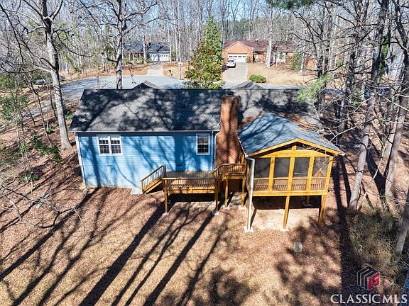 How about your own private oasis in the middle of Athens?! Check out the stunning vaulted screened back porch connected to the multi level deck that overlooks the partially wooded private back yard. Imagine game days out here, speaking of which, UGA is only a 15 minute drive. Great west side home in a quiet family neighborhood convenient to all Athens has to offer, and just minutes to the perimeter. Large open family room with tray ceiling and fireplace, which has gas line connected for optional insert. Tray ceilings also in the spacious master suite with ensuite and large walk in closet. Large driveway leads into a 2 car garage. Fresh paint and new carpet in this one level home. Included in the sale is a newer washer and dryer, and brand new stainless refrigerator. Perfect location to hop on 316 just up the road to head to Atlanta, or head the other way to 29 towards Jefferson and up towards North GA. Just minutes to restaurants, grocery, shopping, etc, but feels like a world away. Lovely, large, flat to slightly sloped yard in the cul de sac of a quiet established neighborhood.
