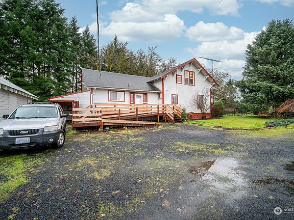 Charming 4 bedroom farmhouse on 2 lots totaling 5.62 flat acres. Kitchen has newer propane range, newer dishwasher and large walk-in pantry. Main level bedroom with walk-in closet. 3 bedrooms and a loft upstairs. Solid home that needs some updating. 2 outbuildings with storage rooms. Conveniently located, only minutes to I-5. 20 minutes to Centralia and an hour to PDX. Possibilities are endless. Multigen, rental income or build. Call today for more information.