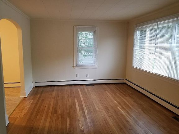 This is a 3 bedroom, 1 bath 2 story home. Living room, eat in kitchen, 2 bedrooms and bath on 1st floor. One bedroom on second level. Hardwood floors, nice yard with storage shed, driveway, central air, oil heat. Washer/dryer stack included. Off street parking. Tenant is responsible for all utilities including a quarterly water/sewer/trash bill. No Pets.
