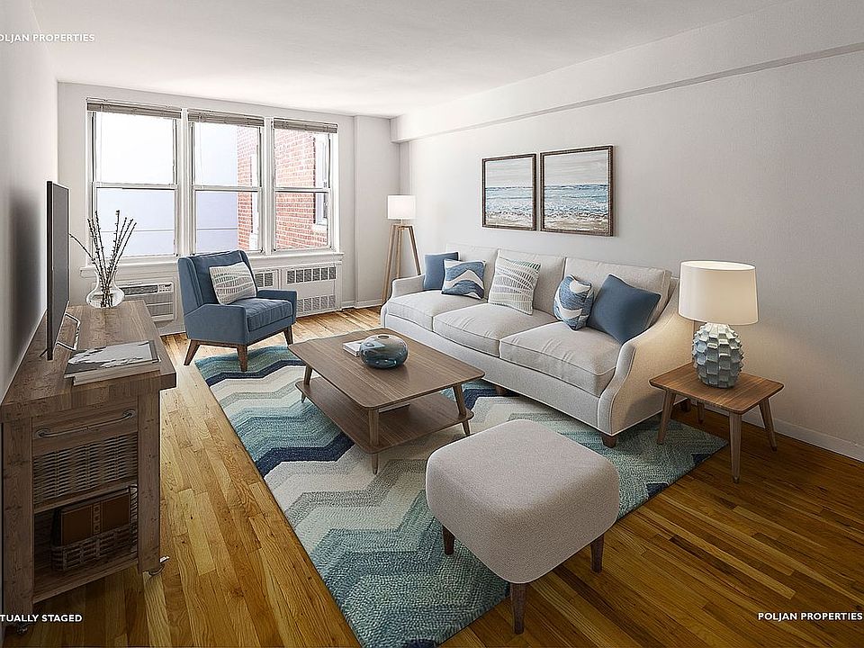 Recently renovated, top floor 1 bed, 1 bath co-op in prime North Kensington. South facing and spacious with classic post war layout, open Kitchen with stainless steel appliances and dishwasher, full-sized bedroom and generous closet and storage space throughout. Hardwood oak floors and through-wall air-conditioning. Meticulously maintained building with elevators, laundry room, live-in super and recently upgraded lobby. 80% financing allowed. Cats only, sorry no dogs. Located on storied Ocean Parkway close to many conveniences, restaurants and cafes including Hinterlands Bar, Werkstatt, Angelica’s Coffee Shop, Wheated and Shenanigan’s Pub. Prospect Park is just a few blocks away as is Ditmas Park’s bustling Cortelyou Road. Transportation: The F/G at Fort Hamilton, the B/Q at Church Ave or take the express BM3 bus to lower Manhattan. The B35 and B103 buses just a block away. Contact us anytime for a private showing.