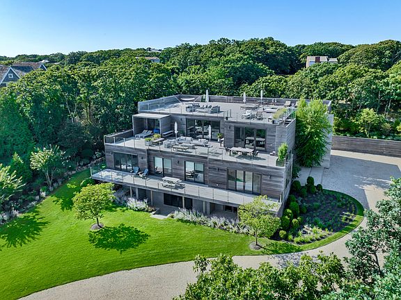 Experience the epitome of contemporary luxury in this exquisite modern residence. Elevated along a secluded drive with commanding views of the Atlantic, this impressive acre-sized estate boasts a distinctive 12-by-28-foot rooftop swimming pool, over 4,000 square feet dedicated to exterior relaxation and entertainment zones, roughly 5,700 square feet of indoor accommodations, and sweeping seaside panoramas visible from nearly every space. The innovative architecture includes three floors of masterfully designed environments framed by vast window expanses, providing five bedrooms, five full bathrooms plus a powder room, along with the potential to incorporate a below-ground exterior pool and spa. On the entry floor, discover four guest suites, three of which feature direct ocean vistas. In addition, enjoy the large recreation area as you pass thru the sleek foyer. Ascending to the upper level reveals a sumptuous main bedroom retreat complete with dual dressing rooms, a tranquil spa-inspired bath including a deep tub, and a private balcony oriented toward the Atlantic. This floor also hosts an expansive gourmet kitchen outfitted with premium Gaggenau fixtures, a spacious living area, and an elegant dining section. Bring your imagination as the property is rounded out by a 3,000-square-foot unfinished lower-level walkout space. It offers vast opportunities for customization such as a fitness facility, wellness retreat, home cinema, extra sleeping quarters, or added space for social gathering. Adjacent to this level, there's room to introduce a substantial ground-level pool and a sheltered outdoor sanctuary. Additional highlights include a garage accommodating two to four vehicles and meticulously maintained landscaping. This exceptional offering showcases superior craftsmanship, forward-thinking elements, and a premier Montauk setting directly opposite the ocean.