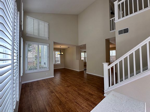 Nestled on a peaceful cul-de-sac in the desirable Vista Pointe gated community, this updated 3-bedroom, 2-bathroom single-family home offers a blend of comfort, style, and convenience. As you step inside, you're greeted by a spacious living room with vaulted ceilings and an abundance of natural light, seamlessly flowing into the formal dining area and an open-concept kitchen with updated stainless steel appliances. The elegant hardwood floors throughout the home add a touch of warmth and sophistication. Upstairs, the expansive primary suite provides a serene retreat with a cozy sitting area, a large walk-in closet, and a spa-like en-suite bathroom featuring a double vanity, a stall shower, and a soaking tub. Two additional well-sized bedrooms share a beautifully updated hall bathroom. The peaceful backyard offers an ideal space for relaxation and outdoor enjoyment. This home is within walking distance to City Center Bishop Ranch, the public library, and the popular Saturday Farmers Market, placing you in the heart of the vibrant community. Enjoy easy access to FWY680 and highly rated schools, and take advantage of the community amenities, including a pool and clubhouse. The property also features a two-car garage for added convenience. Owner pays for HOA fee. Tenants pay for all utilities and regular garden maintenance.