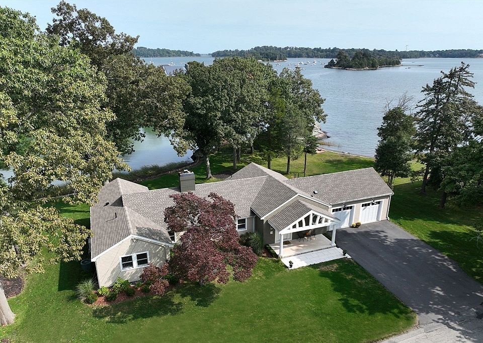 If you value PRIVACY, DIRECT WATERFRONT, PRIVATE BEACH, VIEWS OF HINGHAM HARBOR & the option for one-floor living THIS HOME IS FOR YOU. Located in a coveted Crow Point neighborhood with 1.5+ acres of adventure. The original home was fully renovated in 2021 w/ exquisite addition in 2022. The main level includes; a spacious kitchen with a cathedral ceiling, a wall of glass to view the harbor, and custom VT curly maple handmade cabinets. The countertops are Verde Antique hand-picked from a quarry in VT, beautiful light fixtures throughout the home from Hubbarton Forge, VT. The moment you walk into the home you feel serenity. The living room boasts incredible water views, fireplace, and open to the kitchen for entertaining, with 3 bedrooms, office, laundry and 3 baths. LL has a full inlaw/college graduate suite consisting of a kitchen, bath, bedroom, office, and fireplace living room. Also included an expansive basement for storage, a 2nd garage for boasts/beach props. Come make memories!