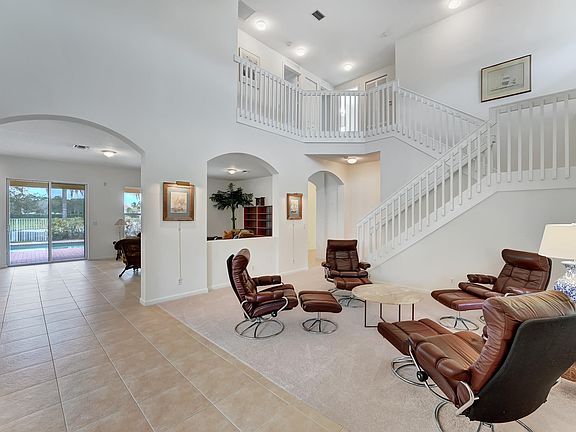 Welcome to the spacious and popular Oakley model, situated on one of the best premium lots with a lake view and a Mediterranean inspired pool. This 5-bedroom, 3-bathroom home with soaring ceilings has 1 bedroom and full cabana bathroom on the 1st floor. The home has been meticulously maintained, is move-in ready and showcases both casual and formal living with an eat-in kitchen which is open to the casual living area overlooking the lanai and pool. The kitchen is well appointed with extensive cabinetry, pantry and features granite countertops with a snack/breakfast bar. The upstairs primary suite overlooking the water is expansive with a seating/gym area off the bedroom and large walk-in closets. The Palm Beach Plantation community is gated and offers sought after amenities such as a community pool, gym, and playgrounds - lawn maintenance and sprinkler maintenance are included in the low HOA fee. Known for A-rated schools, the neighborhood is easy for commuters with convenient access to PBIA, off Southern Blvd, the turnpike, and I-95 is also within close proximity to shopping, restaurants, entertainment and so much more!