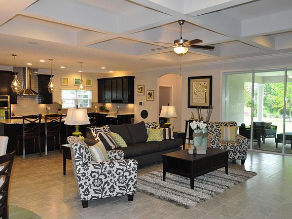 Beautiful four bedroom, three bath home with an open floor plan and three car garage, gourmet kitchen with granite counter tops, large island, pendant lighting, stainless steel appliances, and free-standing gas range, 42'' upper cabinets and a walk-in pantry. Family room includes hideaway sliding glass doors to the screened lanai. Owners Suite with bay window, large walk-in closet, step tray ceiling, recessed lighting, oversized bathtub, separate framed glass enclosed walk-in shower, and double raised vanities with granite countertops. LG wash tower with GAS dryer, tankless gas water heater and Zip Wall System.