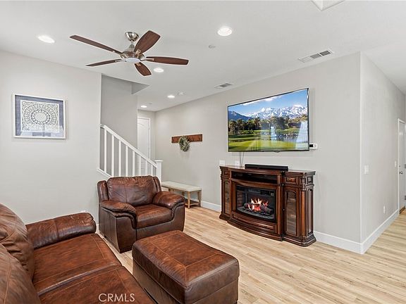 Wow, immaculate home in the desirable Spanish Walk in Palm Desert! This condo feels like a single family home and features 4 bedrooms, plus a loft and has numerous upgrades throughout. Upon entering you find a large open living room, dining room and kitchen area with beautiful vinyl plank flooring throughout. The kitchen features white thermofoil cabinets, granite countertops, energy star appliances. The kitchen has a beautiful upgraded backsplash, upgraded sink and faucet. Downstairs has a full bedroom and bathroom. Off of the dining room is the newly renovated patio with new concrete, patio cover and outdoor ceiling fan. Block wall around the patio for additional privacy. Upstairs features a gorgeous primary suite with tons of natural light, ensuite bathroom with extra large walk in shower, double sinks, walk in closet with added built storage. 2 additional bedrooms are a great size, plus hallway bathroom with bathtub. Upstairs loft is perfect for a multi use space or office. Laundry room is also upstairs and has upgraded table and shelving. Attached 2 car garage that is wired for electric vehicle charging. This gated community has a resort like feel, with 3 pools and spas, kids splash pad, billiard room, fitness center, numerous playgrounds and large greenbelt/park area and so much more. Do not miss out!!