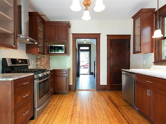 MUST SEE home in downtown St. Charles just steps away from Main Street shops, restaurants, and festivals! Lovingly UPDATED while maintaining historic charm & character. Beautifully restored hardwood floors flow through living room, separate dining room w/ french doors, half bath, gourmet kitchen, and bedrooms. Kitchen features custom cabinetry, granite counter tops, & s/s appliances. Two upstairs bedrooms feature walk in closets w/ custom storage solutions. Gorgeous full bathroom w/ tiled shower/tub combo, glass shower doors, and vanity w/ marble top. Enjoy your cozy front porch, and newer composite deck with pergola out back. Backyard is beautifully landscaped w/ stone patio, and fully fenced w/ wrought iron fencing. Newer siding and roof. All new electric and plumbing. New custom front and back doors with glass storm doors. High efficiency AC (2017) HWH (2010) Sewer lateral (2009). We will review all offers after the open house 6/2. Please make response time 10 pm Sunday.