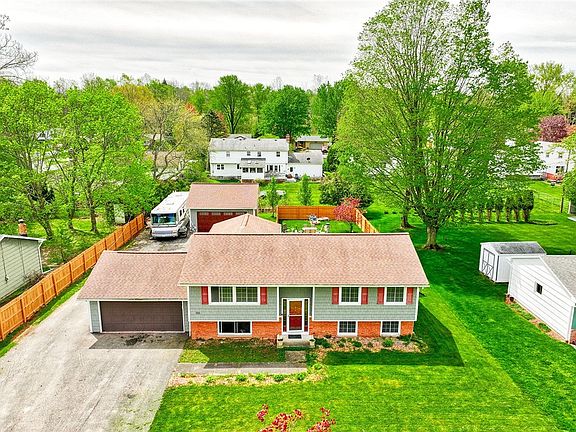 Discover the perfect blend of comfort and elegance in this meticulously updated home, boasting a spacious 14' x 15' screened porch that extends seamlessly from the dinette, offering an idyllic outdoor retreat. The property also features a substantial 520 sq. ft. garage/outbuilding with soaring ceilings, designed to accommodate two storage car lifts—available for negotiation. Dive into luxury with a 9' x 22' heated fiberglass inground pool. Inside, the heart of the home shines with a bespoke designer kitchen, complete with exquisite granite countertops, and is complemented by the modern touch of new luxury vinyl plank flooring throughout the kitchen, dinette, living room, and hallway. 2160 sq ft 2.5 bath, 4 bedroom. 1st floor has second kitchen, family room with access to the attached garage, grade door to the rear yard. Economical gas fired boiler baseboard heat plus a mini-split air conditioner. Transform your living experience with these thoughtfully curated enhancements. Both levels of this raised ranch are finished thereby making the total sqft 2,180. Delayed negotiations begin 5-20-24 at 3 PM