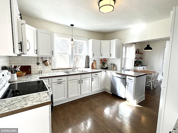 Charming 3 bedroom home on deep lot! Located on a dead end road! Many new updates! New roof and LP siding in 2023. All new windows! Home has beautiful decor throughout with white oak flooring, completely remodeled kitchen, cozy front porch, main level full bathroom with updates! Home has open concept with kitchen, dining and living room areas open! Small sitting room off kitchen. Several custom built ins! LL has a playroom, laundry, sauna and storage! This home is turn key! Great place to call home!