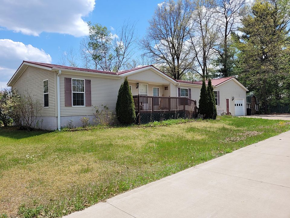 Open concept manufactured home featuring 3 bedrooms, 2 full bath, large master suite with walk-in closet and bath with garden tub, fireplace, and attached oversized 1 car garage. The furnace and central air are new, all appliances are included. Outside there is a garden shed, deck, patio, metal roof all on a double lot.