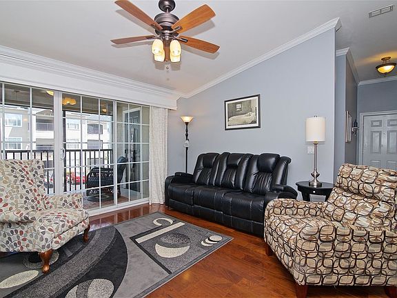 This unit has all the bells and whistles hardwood floors, crown molding, designer paint upgrades to unit! MUST see this fantastic second floor condo! Features hardwood NEW AC Split floor plan. Open concept kitchen over looking the dining and living room. White cabinets, granite countertops, NEW large granite sink and all appliances convey. Updated lighting throughout. Screened in lanai to sit and have your morning coffee. This community is gated and features beautiful swimming pool, grilling area, gym, media room, putting green and tennis courts. What more could you ask for. These don't last. Make your appt today! NEW ROOF! Extra parking( front and back of this unit)!!