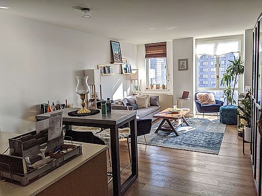 Rent by Owner. NO FEE! Flexible showing time with advance notice, and open houses on weekends. (No brokers please) High Floor Apartment * South facing with clear view of the Hudson River and the Statue of Liberty * Spacious living room and bedroom with large windows * Modern open kitchen with furnished appliances Building Amenities: * 24/7 concierge service * In-building laundry room * Gym, Swimming Pool and Sauna room * Rooftop terrace * Small pets allowed Neighborhood: * Close proximity to major subway lines (1,4,5,R,W) * Walking distance to popular restaurants and shopping centers (Brookefield, Westfield Mall, Wholefoods)