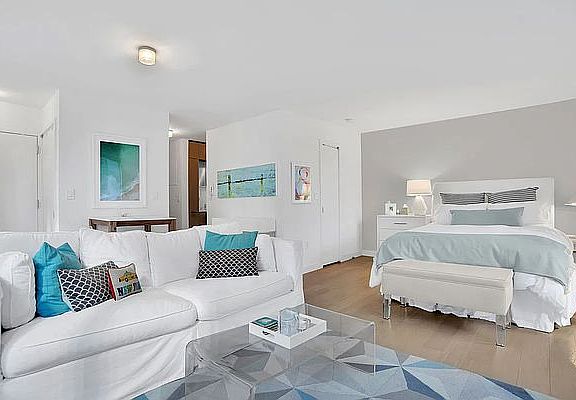 Enter into the foyer of your new home before being delighted by the bright and open space! This 601sqft alcove studio offers the perfect layout, from the separate kitchen featuring concealed appliances including a Miele dishwasher and a DeLonghi stainless range and natural stone countertops, to the large living room and set-back sleeping area offering light filled north-eastern exposures. The spa-like windowed bathroom features a vanity with medicine cabinet, a soaking tub, and beautiful natural stone throughout. This home is complete with wide-plank wood flooring, two closets in the living space, and a large walk-in closet off of the sleeping space allowing for just the right amount of storage. 225 Rector is a full service luxury condominium and is known as an elite Battery Park City residence. Amenities include a thoughtful concierge, one of the best rooftop decks in Manhattan with a cabana and barbecue grills, an indoor pool with a separate sauna room and showers, a state of the art fitness center, valet services, laundry room, garage, and a children's play room. The building also offers Verizon FiOS. Conveniently located near major subway lines (1, R, 4 and 5) and minutes away from the PATH and WTC Transport Hub (4, 5, A, C, E, J, R, W, Z, 2, 3), 225 Rector provides easy access to all parts of NYC and NJ. 225 Rector is directly across from Rector Place Park, and is close to the Battery Park City Esplanade, Brookfield Place, and South Cove Park. Residents enjoy access to trendy restaurants and bars in the Downtown, TriBeCa and SoHo areas whilst having the convenience of access to Whole Foods, Le District and Gristedes for grocery needs.