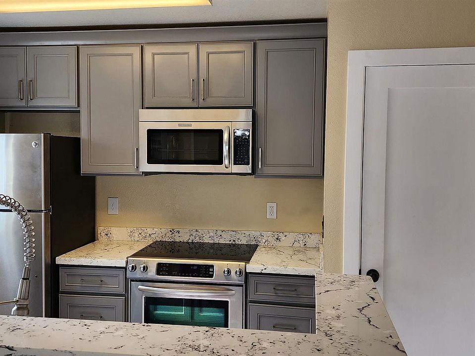 - Features: Breakfast Bar, Counter - Solid Surface, Counter - Stone, Dishwasher, Eat In Kitchen, Electric Range/Cooktop, Garbage Disposal, Microwave, Refrigerator, Self-Cleaning Oven, Updated Kitchen, Other