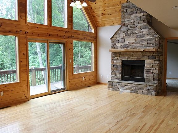 3 Bedroom, 2 1/2 bath home in western mountains of NC! Home is located on large private lot and features open concept, vaulted ceilings, rock fireplace, hardwoods in main living areas, and full bath and powder room on main level. Upper level has catwalk which overlooks main area. Master with en-suite on one end and large storage area on the other of upper level. Lower level is ready to finish for more living space. Lower Level also has laundry, and is partitioned and stubbed for bath. This home would make a great vacation, VRBO, or just a nice place to call home.. This property may qualify for Seller Financing