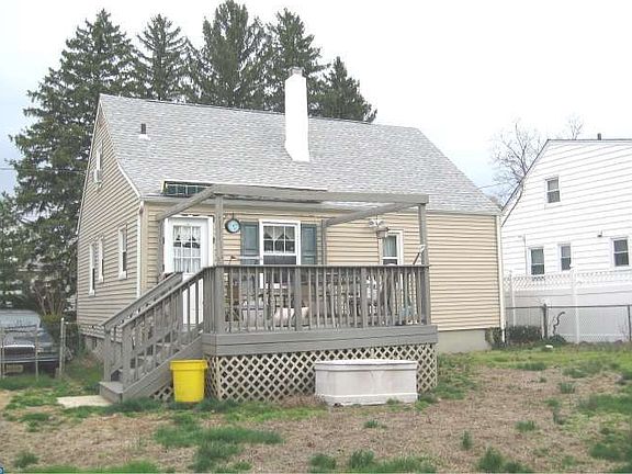 A four bedroom Cape Cod with a front Living room with a bow window and a rear eat in kitchen which leads to a fenced rear yard and a deck with a remote controlled awning for shade. The first floor also has two bedrooms and a full bath (one bedroom is presently being used as a dining room). Upstairs there are two bedrooms, one which needs to be finished by adding closet doors. The basement is the full size of the home and has an outside entrance. The home has newer PVC plumbing in the basement, newer gas hot air heater and A/C and newer siding and replacement windows.