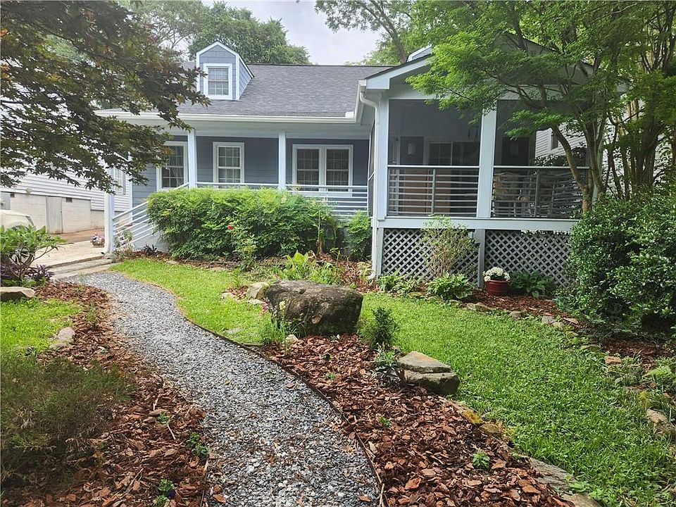 Your are going to love living at 225 Ridgeland Ave! Drive slowly, waving at the dogs and friendly neighborhoods, as you pull up to this adorable, lovely home. Notice the mostly native easy-to-ignore-and -care-for landscaping designed for busy people and pollinators. Walk down the covered front porch into a welcoming entry, where you can drop muddy boots, scarves and coats without getting the beautiful original hardwoods dirty. To your right is one of two large screen porches, where you can hang out and enjoy a morning cup of coffee outside, even if it’s raining. To your left, the large dining room has gorgeous, custom built-ins, including a custom-made table and seating bench. It’s the perfect place for dinners, games and/or homework assignments. From here you are open to both the kitchen and the family room and can see out into the front and backyards, so enjoy all of this natural light! The family room also provides many custom built-ins and a sound insulation wall behind the TV mount. Cozy and warm, this is where you will hang to watch movies, read books and celebrate holidays. The kitchen is a dream kitchen! Flooded with light and open to the dining room, it has more storage than you will know what to do with! The gorgeous island is the heart of the house, measuring 8 feet long it can easily sit 4 – 6 of your favorite people. From here you can watch the backyard’s activities and abundant bird life while chatting with guests in the dining room. This home has the perfect entertaining flow complete with SS appliances, miles of quartz countertops (to avoid stains), timeless white & gray cabinets and Carrara marble backsplash. Down the hall is a private half bath, laundry and a master-on-the-main owner’s suite. This sanctuary offers 2 walls of windows, allowing for great natural light, and more beautiful, original hardwood floors. 2 closets, large double vanity, stylish tile and shower/tub combo with a nice, deep tub! Upstairs you will find more gorgeous hardwoods and tons of natural light in the 3 secondary bedrooms; one can be used as a flex space offering more wonderful custom built-ins. This room has been everything from a movie room, teen hang out, bedroom and office. The old 1950s charm, with interesting design and dormer windows, make the upstairs special. The full upstairs bathroom has a tub/shower combo with the original cast iron tub. When you enter the private, fully fenced backyard, you will find a spacious storage shed and the 2nd large screen porch. This porch is great for movies and entertaining! The large yard has room for roller skating, tables, chairs grills, play set, chalk art, kiddie pools, badminton, cornhole, soccer and chilling. Enjoy the gorgeous stone fireplace, where you can cook smores and enjoy cool evening. The plants include a young weeping cherry tree, blueberry bushes, camellias, rosemary, pollinator attractors, and pecan and apple trees. This location is the best of all worlds! It is quiet but close to everything “City of Decatur,” Marta and the Stone Mountain bike path. You can be downtown in minutes in the middle of all the action or tucked quietly into your home on this tight-knit, dead-end street. Enjoy! Owner is a licensed Real Estate Agent.