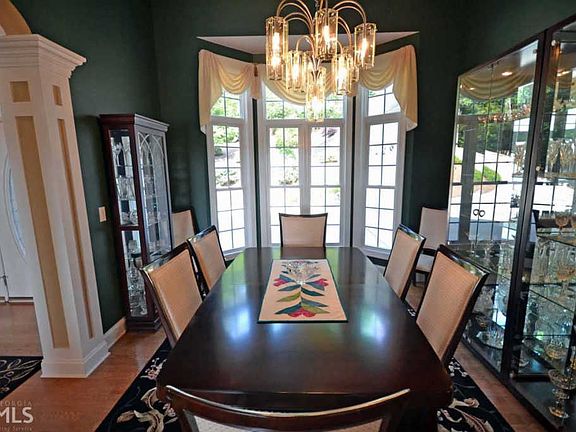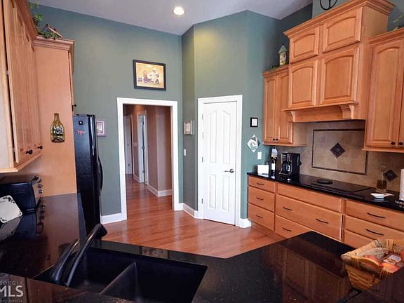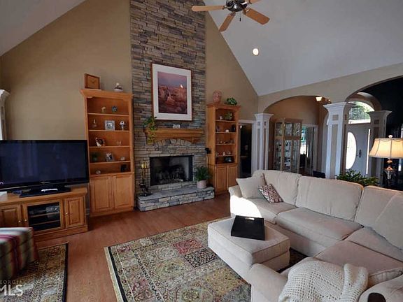 Location convenient to I85. Protected subdivision. Main level: great room with open view of lake, wood flooring, vaulted ceilings, stone fireplace, sunroom with second stone fireplace, granite kitchen. 2 dining areas. master suite. 2 more bedrooms and 1.5 baths, office, 2 car garage. Terrace level: rec room, 2nd full kitchen, dining area, bedroom, 2 full baths, sewing suite, 1 flex room for office, exercise, crafts or additional sleeping, golf cart garage, short walk to 2-level dock with sandy beach.