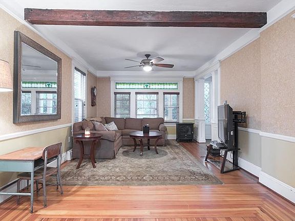 Charming Cape close to ALL amenities and major highways. Home bodes beautiful wood floors throughout and exposed wood beams. Original features kept from period such as custom stained glass windows. Home has new windows, roof, paint, stained floors, and a fully renovated bathroom on the main level.Set back off main rd and walking distance to beautiful park. A must see!!