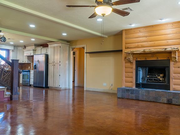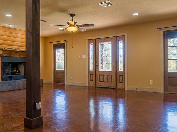 One and a half story home with Cypress Wood siding, milled to look like logs. Large kitchen features porcelain countertops and backsplash and custom built antiqued cabinets. Fireplace in the Great room, large beveled glass doors, custom build stair rails from Wisconsin, fireplace, split master floor plan, wrap around porch, 30x50 workshop, 16x24 attached apartment, all sitting on 2 acres. Mobile home and carport to be removed from property, unless purchased separately. All measurements are m/l.