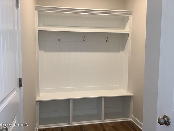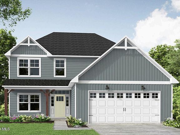 The Clayton. First-floor primary suite features a tray ceiling with crown molding and a spacious ensuite bath with white dual sink vanity with center drawer stack and ''Niagara'' quartz countertop, private water closet, walk-in tile shower, linen closet, and spacious walk-in closet. The great room offers a gas log fireplace with a mantle and black granite surround, along with access to the rear covered porch. Flex room off the foyer. The kitchen opens to the great room and dining area, and includes an island with a sink, ''Elegance'' quartz countertops, white shaker cabinets, white subway tile backsplash, pantry, and stainless-steel appliances including a microwave, dishwasher, and gas range. The garage entry leads to a mudroom with built-in bench and cubbies, a coat closet, and half-bath. Upstairs there is a loft with a linen closet, a home office, laundry room, three additional bedrooms, and two full baths—each with a vanity and tub/shower combo. Durable LVP flooring runs throughout key living areas. The exterior includes low-maintenance vinyl siding with board and batten accents, dimensional shingles, a covered front porch, and a front door painted SW ''Pineapple Cream'' with sidelights, a transom window, and smart keypad entry to home. 2-car garage. Fiber optic internet availability. 1-2-10 builder warranty and Energy Plus certified.