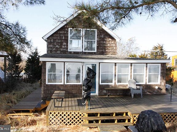 A secret bay front gem at an affordable price in the Kitts Hummock neighborhood is ready for to be called HOME! This cute well-maintained cottage is located directly on the Delaware Bay and has tons of front windows with great views of the bay and it offers a nice size deck for outdoor seating. Imagine owning this cozy cottage and sitting in the front sunroom/den area enjoying the relaxing views of the bay while watching the wildlife run free. Or better yet, enjoy winter evenings listing to the ocean waters while snuggled near your firepit on the spacious front deck. The home features a 1st floor bedroom that has easy access to the main floor bathroom and there is another bedroom on the 2nd floor that has its very own private bathroom. The 2nd floor bedroom has a nice window view of the bay also. This home was rehabbed in 2006 with some nice updates. The home features: Hardwood flooring throughout, some recess lights, the kitchen is fully equipped with an electric range, and refrigerator. This home is very well maintained and has lots of charm and is nicely decorated. The home is being sold with most of the tastefully decorated personal items included with the sale. The $200/yearly HOA fee does include the water bill for this property. Check out the 3d tour of this home.