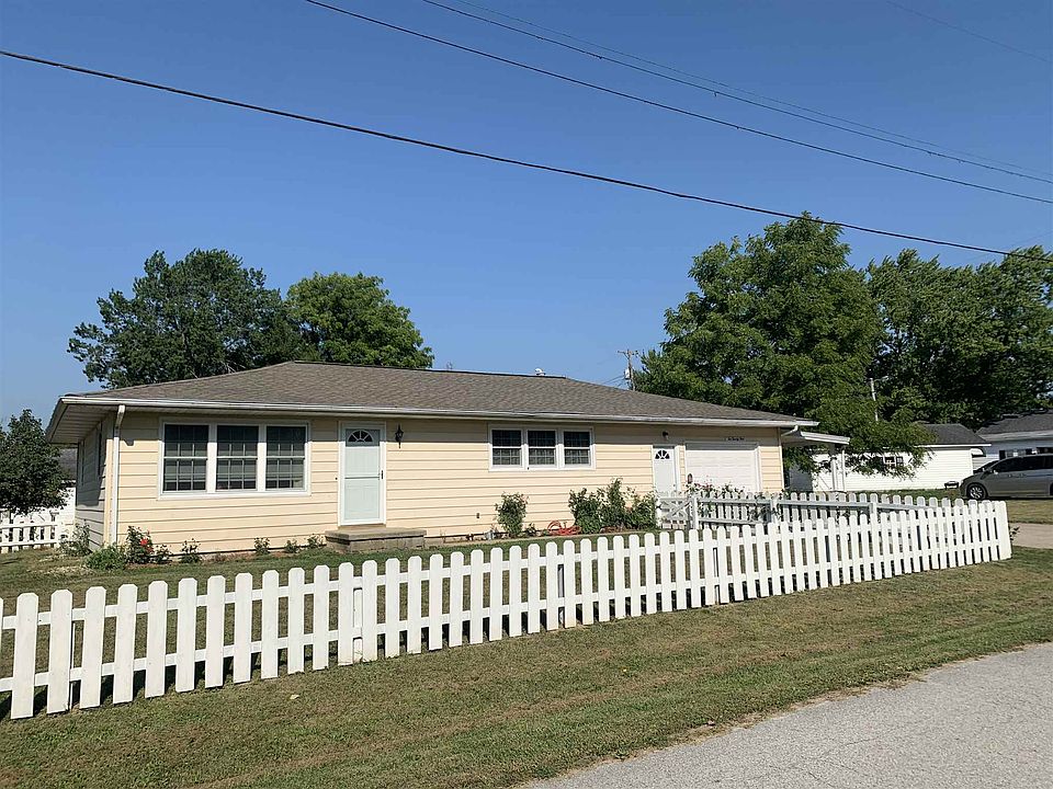 Welcome Home! Small town living at its best, cheerful and charming 3 bdrm ranch has much to offer. Spacious living room with hardwood floors, large eat in kitchen with stainless appliances, other improvements include updated bath newer windows and roof, new furnace and CA, new washer dryer, new garage door opener. offers attached garage, car port and shed complete with a picket fence.