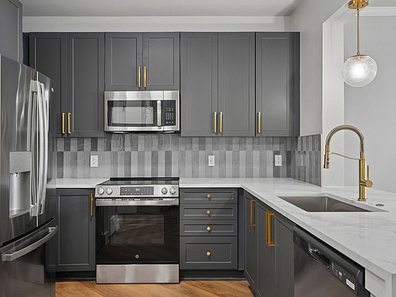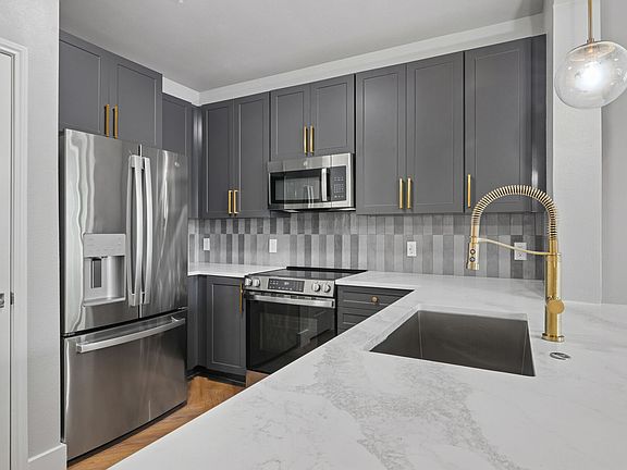 - Exterior features: 6 Inch Baseboards, Barbecue, Business Center, Chrome Hardware, Conference Room, Courtyard, Custom Closets, Espresso Cabinets, Framed Mirror, Free Weights, Gold Hardware, Granite Countertops, Gray Cabinets, Landscaped Courtyards, Spruce Lifestyle Services, Stainless steel appliances, TV Lounge, USB Port, White Quartz/Undermount Sink, Wood Style Flooring, Wood thru out except bedrooms