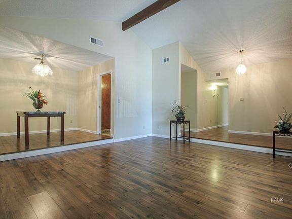 NEWLY upgraded & spotless home!! Conveniently located near Richmond back gate & Fairgrounds, in well established neighborhood! Eye-catching water-friendly front yard space and home w/ NEW fascia & trim will capture your heart. Inviting foyer & large sunken living room w/ vaulted ceiling greets visitors. Wood-like vinyl plank laminate flooring creates delightful appearance throughout much of house. NEW updated & centrally located kitchen has many NEW features (granite countertop, stove, dishwasher, microwave oven & overhead lighting). Adjoining dining rm & large open family rm w/ fireplace are perfect for family activities. A half-bath w/. NEW countertop & indoor laundry rm are nestled in a side hallway - perfect for a family "on the go". Guest bdrm have copious closet space. Both master bathroom & guest bathroom have UPDATED countertop too. Spacious master bdrm with 2 large mirrored closets. 2 sliding doors access to the large back yard. Backyard has 2 covered patio spaces. A large 2-car thru-access garage provides for convenient unloading to the kitchen via a side door in the back. Dual cooling provides comfort in the summer heat. Come see this delightful home!
