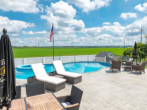 Better than new! This stunning Basso Built home offers 4 bedrooms and 3 full baths with an open-concept living, dining, and kitchen featuring granite counters, shaker cabinets, and stainless steel appliances. The finished lower level includes a built-in bar, office space, additional bedroom, and full bath--perfect for work and play. Step outside to your private outdoor paradise with a heated pool, hot tub, pergola, expansive stamped concrete patio, and a professionally landscaped yard designed for beauty and entertaining. An attached 2-car garage completes this exceptional home. Not to be missed!