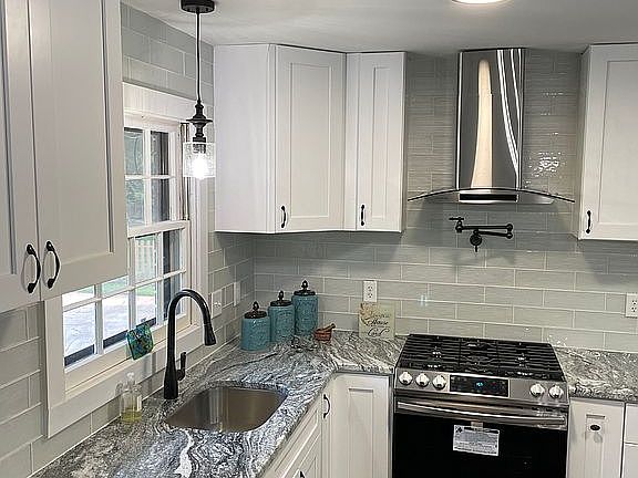 Beautiful ranch style home completely remodeled. .46 acre lot on a quiet street in a desired Salisbury neighborhood. Refinished Original hardwood. Programmable front door entry. All new matching ceiling fans in every room. All new kitchen. New shaker white kitchen cabinets with soft close drawers and doors and kitchen island. All new appliances, pot filler , Level 5 granite throughout kitchen and the long fireplace hearth. glass tile backsplash, motion activated kitchen faucet. New lighting and open floor plan over looking fireplace, dining area and family room. Gas stove, gas instant/tankless water heater. Updated bathrooms. All new lighting. Great front porch on a lovely green lot with mature shade trees. Out building with electric and workbenches. New roof. Carport with apoxy flooring. Climate controlled laundry room attached with new cabinets and glass like ceramic floor. Many more great features not listed. Must see to appreciate. Home sold with a one year Home warranty.