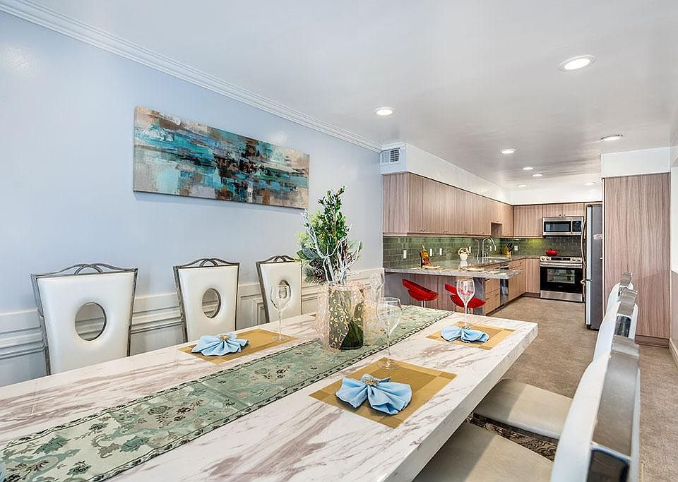 Luxury designer condo in top-rated Beverly Hills school district. Big kitchen leads to large formal dinning. Spacious living room with fireplace and bar area for your entertaining. Quiet balcony with western exposure. Recess lighting throughout the units. Charming master bedroom with large walk-in closet and dual sink vanity. No common walls allows ultimate privacy. Laundry room is in unit. 2 assigned parking spaces. Great location near all the amenities of Beverly Hills Shopping, parks and schools.