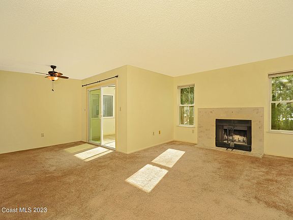 Enjoy the VIEWS OF THE INDIAN RIVER from the bedroom window and living areas! The sunroom features tile, newer sliders and lots of windows, perfect as an office or flex room. The living area has been freshly painted and features NEWER WINDOWS throughout along with an updated bathroom and a large walk in shower. There is a functioning FIREPLACE, a great focal point in the living room. There is a FULL SIZE WASHER AND DRYER in the pantry off the kitchen. You'll love the proximity to the Merritt Square Mall, Historic Cocoa Village, Beaches and more. The sunsets are beautiful and there are numerous amenities to enjoy such as an olympic size pool, clubhouse, tennis courts, walking paths, and a large deck overlooking the river. Don't miss out on living in this RIVERFRONT COMMUNITY of SUNSET BA
