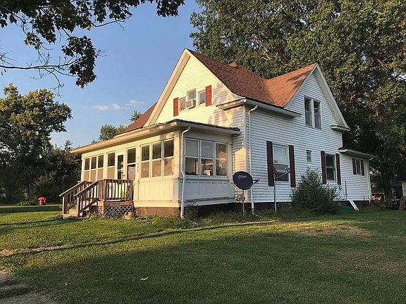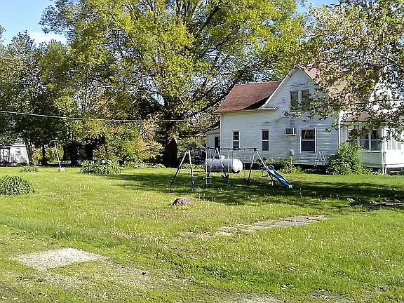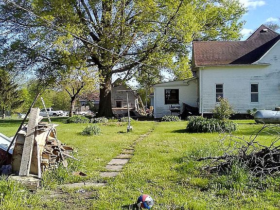 This beautiful older 2 story home is one in a million. It has all original woodwork and hardwood floors under the carpet. Lots of character. Tons of living space and storage. Large kitchen with eat at bar. Large dining room. Huge double living room. 3 nice sized bedrooms 2 of which are on suites.....one of which is a huge master. Has 2 full bathrooms. Laundry on first floor. This house would make a nice starter home, rental property, or retirement home. Located in a nice quiet country town with great neighbors. Wonderful school district. Positioned at the edge of town on 3.5 lots. Only a block from the park and walking distance to the local bar, gas station, mechanic shop, and auto body shop. This house has new countertops and back splash ready for installation if the new owner chooses to have them put in. This house a fully enclosed front porch perfect for sitting and enjoying those beautiful country nights. Back porch is also in closed to make access to the basement easier. It needs windows replace, dry wall in 1 bathroom, new soffits and some updating. Price has been dropped to make renovation easier.