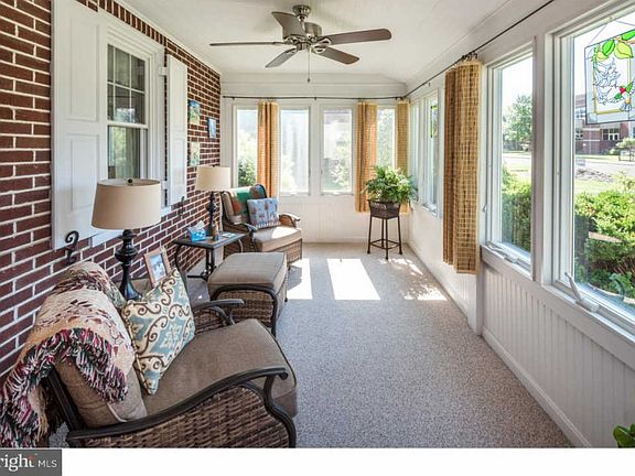 One of the largest, vintage brick capes in Lansdale's desirable West Ward! While sitting in your cozy sunroom, or looking out your bay window in the living room, you have a great view of York Avenue Elementary school! Many updates throughout this 3 bedroom, 2 full bath corner lot home. Large kitchen has granite counters, island, and breakfast nook with great view of back patio. Charming dining room with corner built-in cabinets, and hardwood floors. Living room is book ended by the prominent bay window and grand brick wood burning fireplace with deep mantle. Sunroom with an abundance of natural light. 2 bedrooms and large full bath on main level. Upstairs, you will find a huge master bedroom with built-in shelving, walk-in closet with window, and a large updated master bath. 2 zone central air(lower level brand new). Storage shelving in full basement. Detached oversized 2 car garage, back patio, gardens. Walking distance to the great dining/entertainment of downtown Lansdale, and local parks and pool. Convienient to all highways, shopping, and Septa Train Station. This is a MUST SEE gem, on a great corner lot in a wonderful neighborhood!