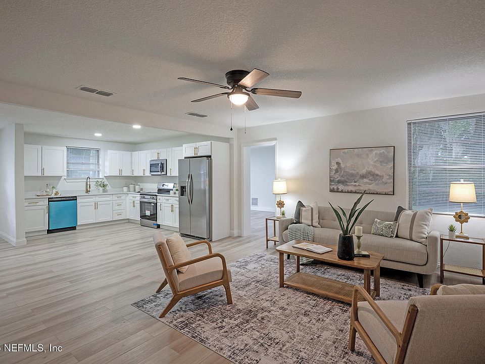 **UPDATED**FRESHLY PAINTED**FENCED BACKYARD**Discover this charming and updated BRICK HOME, radiating fresh appeal with a FRESHLY PAINTED INTERIOR AND EXTERIOR! Boasting 3 bd/3ba across a comfortable 1,641sqft, this residence features stylish touches like cute lighting fixtures and elegant gold accents throughout. The heart of the home is an UPDATED KITCHEN, showcasing NEW CABINETRY and NEW APPLIANCES. You'll love the seamless look of NEW WOOD-LIKE LVP FLOORING throughout, complemented by tons of natural light creating a bright and airy atmosphere. All bathrooms feature luxurious floor-to-ceiling tile. The OPEN LAYOUT flows beautifully, centered around a cozy BRICK FIREPLACE in the living room. Outside, enjoy your private fenced-in backyard with a COVERED PATIO, ideal for relaxation or entertaining. The FRESHLY DONE LANDSCAPING enhances the home's curb appeal, and a 2-car garage provides ample parking and storage. This home is truly MOVE-IN READY