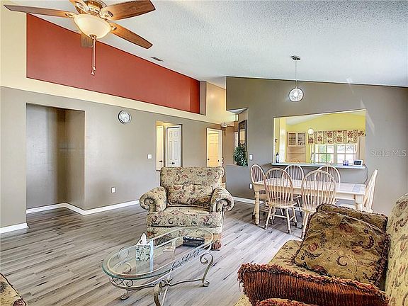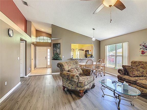 This beautiful 3 bed 2 bath pool home sits in the desirable Westridge community. As you step through the front door, you immediately appreciate the open floor plan, high ceilings and the recently updated laminate wood flooring throughout the living areas, master bedroom, and hall. Entertaining here is a joy as you have an open living room/dining room enjoying pool views to the back as well as an eat in kitchen. The split floor plan features the master bedroom with ensuite to the right, which easily fits a king sized bedroom set. Bedrooms 2 and 3, down a separate hallway, share a spacious guest bath. All bedrooms are equipped with ceiling fans/ lighting. The large screen enclosed pool is heated allowing you to enjoy the pool all year long. Numerous upgrades: Exterior complete with gutters, New Roof 2018, Newly painted exterior 2018, New AC/Heater 2019, Flooring 2019/2020, New Pool Heater 2018. Nearby shopping and dining, community pool, playground, and tennis courts in subdivision. Minutes to I-4, easy commute to Orlando or Tampa. Close to all Amusement Parks, minutes to Champions Gate, golf. Don't miss the 3D virtual walk-through tour...you'll be sure to fall in love!