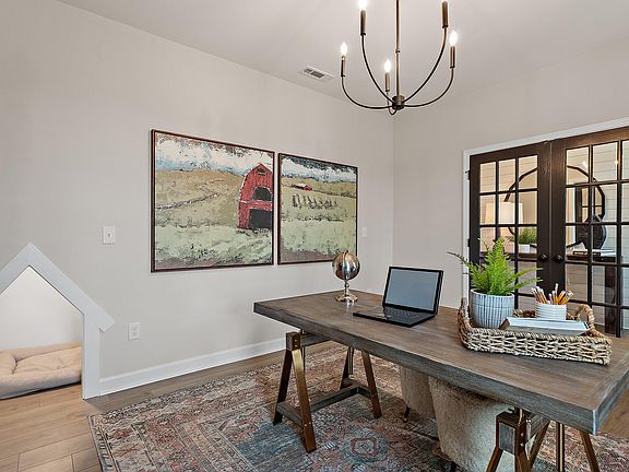 Welcome to the Webster plan, a truly inviting home designed with both comfort and style in mind! This stunning layout offers four spacious bedrooms and three and a half baths, including a private guest suite conveniently located on the main level. The heart of the home is the kitchen, complete with a massive island that's perfect for everything from casual meals to hosting large gatherings. The main level also features a bright, light-filled sunroom, a cozy guest suite, and a private office with elegant French doors—ideal for work or relaxation. Upstairs, you'll find a serene primary suite with a beautiful tray ceiling, two walk-in closets, and a luxurious garden tub and tiled shower for the ultimate retreat. The second floor also has two generously sized bedrooms with walk-in closets and a spacious loft area, offering even more room for family and friends. With ample space for entertaining and everyday living, this home is perfect for every occasion! Located in the beautiful Georgia's Landing community, you'll enjoy the convenience of being just 15 minutes from Downtown Raleigh. Come see why the Webster plan is the perfect place to call home!
