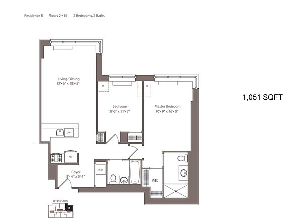 - Total interior livable area: 1,051 sqft