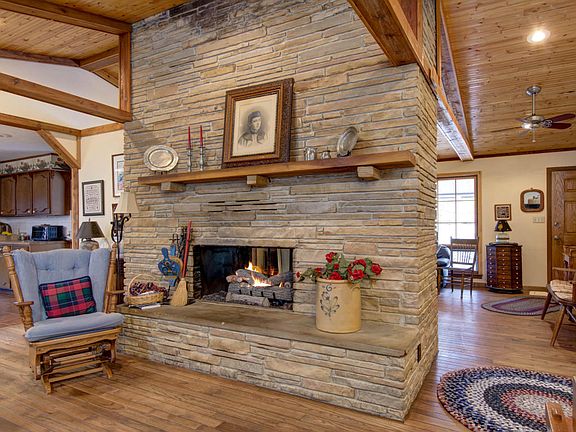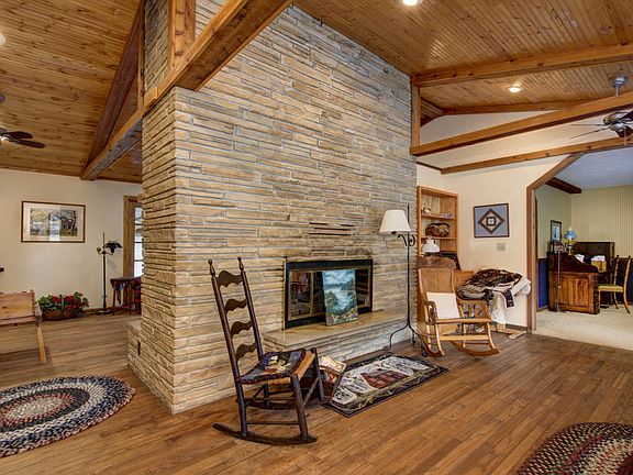 Location, Location, Location. Prime lakefront home on a 3/4 acre lot down Talking Rocks Road. One level with 4BR/2 1/2 BA. Four season sunroom to enjoy the lake and landscaped perennial garden yard. Stacked stone see-thru fireplace connects the living room and great room that have tongue and groove beamed ceilings. Great open kitchen with new appliances and formal dining. Two bonus rooms can be used an office, craft room, or storage. Three decks, two car detached garage, and circle drive. Walk to the two boat slips directly behind the house available for additional $20,000 each. Great neighborhood and close to all Branson attractions
