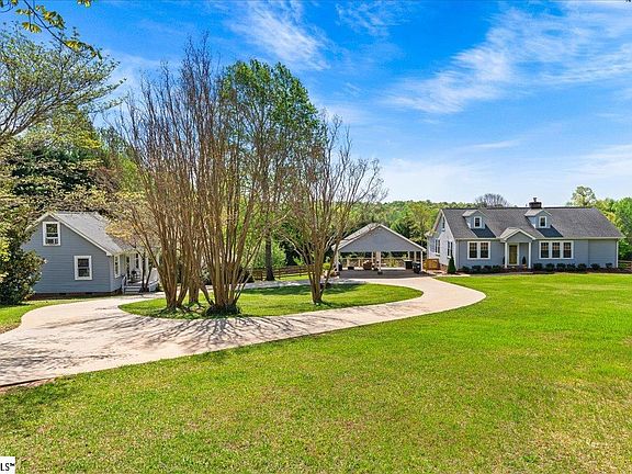 Welcome to 225 Settlement Rd – A thoughtfully renovated private Retreat in the Heart of Travelers Rest PRICE IMPROVEMENT! Nestled on a picturesque 6-acre estate, this exceptional property shares the perfect blend of privacy, tranquility, comfort, and versatility. The beautiful and extensively updated main residence features a warm, modern interior with high-end finishes throughout its 4 spacious bedrooms, and 3 full bathrooms. A highlighted improvement to this estate was the completion of a home addition (2024) to create a "master on main" that provides a spacious retreat for homeowners with stunning views throughout the bedroom along with a walk-in closet and a gorgeous master bath outfitted with a custom walk-in tile shower. At the heart of the home, you’ll find an updated kitchen outfitted with GE Café Series appliances, sleek quartz countertops, and plenty of space for entertaining. Conveniently flowing from the kitchen is a spacious and welcoming large living room with a wood burning stove. The dining room also showcases another nook of additional living space perfect for a sitting area, play area, or home office. On the first floor you will find an additional bedroom along with two more spacious bedrooms upstairs. A standout mudroom/laundry room off the kitchen adds function and charm. Step outside and discover your own private oasis: a fully-stocked pond, open acreage ideal for gardening or recreation, mature trees, fruit bearing trees and blueberry and blackberry bushes sharing the kind of tranquility that’s hard to find. The acreage also contains a shed and workshop area with shelving and electricity. Opportunities are endless for this unique property and the stunning views and peaceful setting speak for themself! Adding even more value is the 1,000-square-foot two bedroom one bathroom fully furnished guest house – a perfect space for extended family, guests, or rental income. With its own entrance and full amenities, it’s a rare benefit that expands the possibilities of this unique property. Located just minutes from downtown Travelers Rest, the Swamp Rabbit Trail, the YMCA, and the Green Valley Country Club this one-of-a-kind retreat showcases the best of Upstate South Carolina living – privacy, luxury, and location. Schedule your private tour today and come experience everything 225 Settlement Rd has to give.