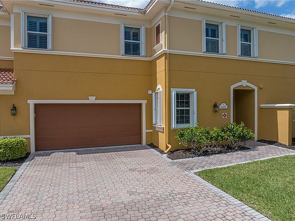 Enjoy The Good Life In This 3 Bedroom 2 Full Bath Condo In The Beautiful Blue Water Coach Home Community! This Lovely Unit Is Offered Fully Furnished, Is Spotless And Move-In Ready, Has Gorgeous Views Of The Lake With Lighted Fountain, A Large Screened Lanai Overlooking The Lake, And An Attached 2 Car Garage With Private Driveway For Additional Parking. The Many Ugrades Include Granite Countertops & Hardwood Cabinets In The Kitchen and Both Baths, Crown Molding, Tray Ceilings, 8' Interior Doors, High Ceilings, And Expansive Slider Doors In Both The Living Area And The Breakfast Area Off The Kitchen Giving Gorgeous Views Of The Lake. Blue Water Coach Homes Has Lush Landscaping, A Composite Boardwalk Along The Boat Docks, A Heated Pool And Spa, Fitness Room, And A Fantastic Tiki Hut Area To Relax And Enjoy The Sunsets. New Tile Roofs On The Buildings Are Coming Soon With No Assessment To Owners! Schedule Your Showing Today And Enjoy The Good Life!