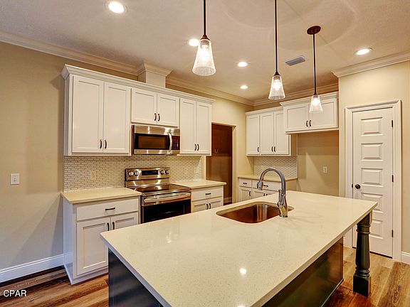 - Interior: Lighting Recessed, Pantry, Kitchen Island, Ceiling Tray/Cofferd, Floor Vinyl Plank